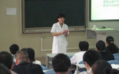 冯朝晖教授从事眼科工作近30年,理论知识广博,临床经验丰富,报告以“近视眼的预防与治疗”为题目,从近视眼的发病率、发病原因等方面,逐渐深入的讲解近视眼的诊断方法、预防措施、治疗方法及注意事项。纠正了部分同学对近视眼理解的误区,使他们对近视眼的概念、治疗措施有了深入了解,充分调动了学生的学习热情。最后,冯朝晖教授对本次专题讲座内容进行了全面总结,使大家在生活和工作能够应用所学知识,做好近视眼的预防和治疗,能让更多人远离近视。