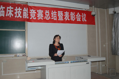 会上,教学副院长刘原指出,长期以来,我院高度重视实习生的理论基础学习和临床技能训练,通过“以赛促学,以赛促教”的方式,全面提高实习医师临床综合素质,促进教师的教学积极性和教学规范化,进一步提高教学质量。马肖容主任分别从竞赛准备阶段、竞赛阶段及总结阶段做了详细汇报,同时对下一步举办第四届高等医学院校临床技能竞赛做了初步的规划。督导许明章对本次竞赛和下次竞赛提出了自己的意见和建议。教师代表王玉环教授总结了自己的带教及往届技能竞赛的培训经验,鼓励学生积极参与,全面的临床技能培训将使大家受益终身。