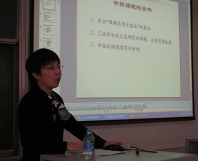 何爱丽教授多次与大家沟通交流,针对学员的实际情况和要求进行备课。讲授内容包括科研课题类型及其特点,申报课题的条件和渠道,选题的原则、程序和要求,申请人简历和经费预算、申报书的填写等。