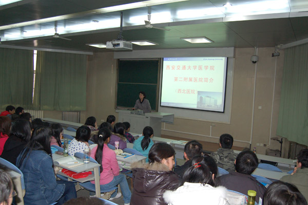 新学年第一周周一下午,我院召开了08(5)年制迎新会,会议由教务部马肖容主持,刘原院长发表了讲话。她们代表二院各级领导和全体老师热烈欢迎同学们到我院来学习。刘院长介绍了我院悠久历程和学科发展等综合情况,勉励同学们珍惜光阴、奋发向上、刻苦认真、努力学习,全面发展。马肖容主任在会上就临床教学安排向同学们作了详尽的讲解;分析了临床课的特点,介绍了学习临床课的方法和注意事项,她还特别强调和重申了学校关于教学方面的各项规章制度,向同学们提出了殷切期望,希望大家愉快、顺利地完成学业,成为合格的、高质量的、优秀的毕业生。老师的谆谆教导和殷切希望给同学们留下了深刻印象。