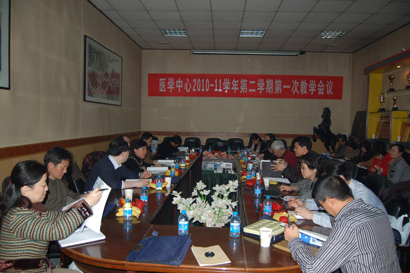 新学期开学第一周,2月24日下午,医学中心组织召开了2010-2011学年第二学期第一次教学工作会议,医学院、第一、二附属医院、口腔医院、第三附属医院各教学院长、教学部(办)主任、副主任、教学管理人员近30人参加了会议,会议由医学中心副主任臧伟进教授主持,邀请教务处鲍崇高副处长、杨鹏教学主管及医学督导专家组组长胡海涛、副组长李映丽参加。本次会议由第二附属医院教务部承办,院党委书记韦俊荣教授、院长贺西京教授高度重视,贺院长代表医院对各位参会领导、专家表示欢迎,并感谢对二院教学工作的指导和关心。