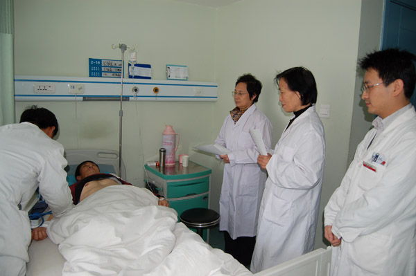督导随机抽取我院心内科和泌尿外科进行现场考查。按照学校评估标准和内容,检查团分别翻阅了科室带教管理资料,查阅了学员书写的大病历、现场抽考了4名学员的技能操作,其中内科考查了2名学员心肺查体,外科考查了2名学员无菌伤口换药,并针对该专业基本知识进行了提问。我院纪宗正教授、孙秀珍教授参与了本次检查的全过程。