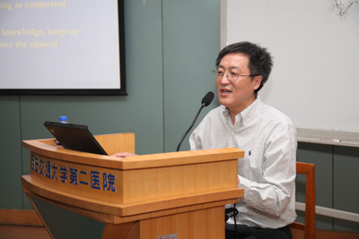 首先,李宗芳副院长代表院方对江教授来院讲座表示热烈欢迎。江教授做了题为《完成高质量课题,发表高水平文章的技术要点》的讲座。讲座中,江教授根据自己从事科研工作的多年经验体会,从课题的选择、实验设计、实验方法学、研究条件及研究者个人经历、能力等方面深入浅出地讲解了应该特别注意的问题,与会者感到聆听讲座受益匪浅。