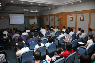 5月20日上午,美国佐治亚州莫瑟尔大学医学院生物医学系的江世文教授来我院“大家讲堂”为科技人员做了一场精彩的学术讲座。讲座由李宗芳副院长主持,部分学科主任、科技人员约60余人到会。