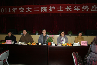 1月6日,室外虽然寒风袭人,但在我院大礼堂内却是春意盎然,洋溢着亲切的问候与美好的祝愿,副院长高亚、李宗芳、刘原、李文典,总会计师谢丹和全院83名护士长以及退休的护理老前辈们欢聚一堂,幸福的笑声与热烈的掌声融汇在一起,勾勒出一幅和谐美好的画面……这就是2011年我院护士长年终座谈会上感人的场景。