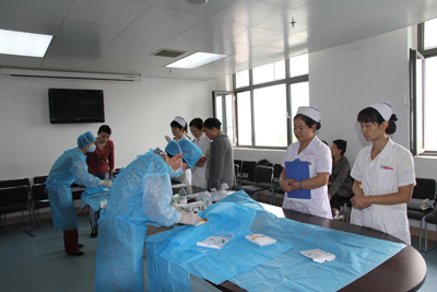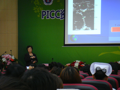 9月21日-23日由护理部主任杨惠云及副主任刘红梅、孔德玲主持举办了西北地区第一届UNA PICC资质认证培训班。培训班特邀北京空军总院乔爱珍主任护师、陕西省护理学会李武平理事长、陕西省护理学会静疗分会秘书西京医院陈金凤护士长、唐都医院何华副主任护师、交大一院张亚婷副主任护师、我院李小鹏副主任医师、杨惠云副主任护师、巴德公司刘炜护理专员等专家就国内外静脉输液新进展、PICC人员资质认证、患者因素评估、治疗方案评估、PICC穿刺部位评估、血管通路工具选择、穿刺部位准备、超声引导下PICC置管、维护及并发症处理等进行理论培训。我院张瑞丽、李小宁护士长实战演示了超声引导下塞丁格技术置入PICC导管技术,与会者通过同步视频清楚地观看了操作全过程,宋亚华护士长在视频现场进行解说并答疑。经过2天紧张的学习并进行了严格的理论及操作考核,55名学员顺利通过考核,获得优异成绩。