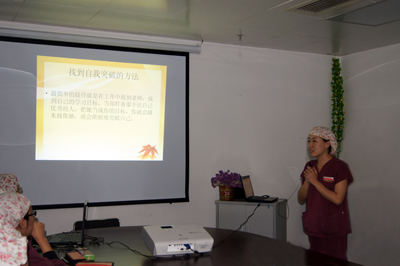 消毒供应科全体工作人员积极参加,大家精神抖擞,情绪激昂地讲演着精心准备的幻灯课件,每个人都充满了自信与活力,整个演讲过程情真意切,扣人心弦。比,爱岗敬业精神;赛,人人奉献自我;看,个个凝神专注;听,掌声持续热烈。这就是我们的演讲比赛!
