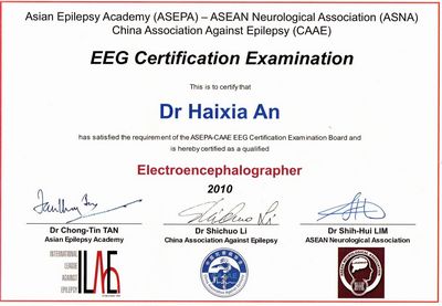 我院干一病区安海霞同志顺利通过了首次由中国抗癫痫协会与国际抗癫痫联盟亚洲大洋洲地区教育委员会(ASEPA)和亚洲神经科协会(ASNA)共同举办的“亚洲癫痫学会-亚洲神经科协会脑电图资质考试”(ASEPA-ASNA –CAAE EEG Certification Examination)。成为我国首批、陕西省唯一一名通过该项考试的脑电图专业人员。本次考试是我国引入国际考试的首次尝试,考务工作(考试方式、试题试卷、评分、考官等)完全按照国际标准进行,考试结果真实地反映了脑电图从业人员的实际水平。