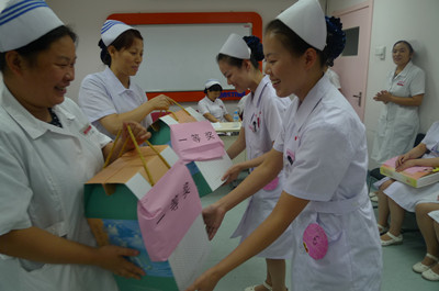 下午的比赛,在妇产科示教室进行,由全体妇产科护士共同参与,比赛的内容分为健康宣教知识及棘手问题现场解答,评委们根据妇产科提供的打分依据给予打分。健康宣教问题是妇产科常见的疾病及护理问题的浓缩归纳。这就要求每一位选手必须全面掌握妇产科的相关理论知识。而棘手问题的解答,更是将整个比赛气氛推向了高潮。各位评委老师将自己日常工作中曾遇到的一些棘手的问题向选手们提问,由选手们现场解答,考查选手们的应变处事能力,最后再由评委老师点评出自己的处理经验与大家共享,此项举措使大家在进行激烈比赛的同时,也得到了有益的学习。整个下午的比赛选手们优雅的举止,得体的仪表,流畅的回答及机智的应变,无不展示了妇产科护士们丰富的理论知识及深厚的内涵素养。