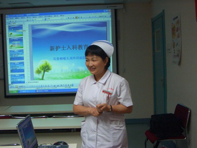 由吴彩芹总护士长主持,许珉常务副院长、任晓勇副院长分别进行了讲话,参加入科教育大会的还有杜小滢副护士长、杨慧副护士长、李静静副护士长及本科室护士共计37人。首先由吴彩芹总护士长运用多媒体教学进行了新护士入科教育,内容包括我病院科室简介、科室管理、科室文化、科研教学等,并对她们在文化修养、自身素质、操作技能、思想品德等方面提出了要求。接着由14名新岗护士分别上台,进行自我介绍,内容包括姓名、家庭住址、毕业学校、文凭、个性特点等等,她们表示很高兴能融入耳鼻喉科病院这个大家庭,希望能学到更多的专科知识。