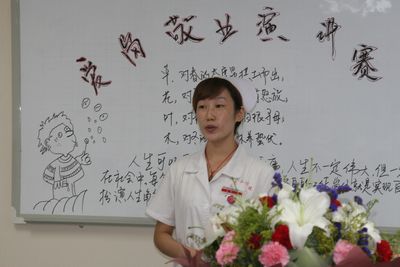7月28日,在普通外科三病区示教室进行的“爱岗敬业”演讲比赛决赛成功落下帷幕。此次演讲比赛共有30名护士参加比赛,为了充分调动大家的积极性,比赛设立了丰厚的奖项给进入决赛的十位选手,决赛专程邀请了工会主席、普外科主任黎一鸣,院团委书记王丽娟,副书记张成基,普通外科党支部书记吉鸿,组织委员马建仓及大外科的护士长高彩霞、和我科五位护士长共同担当评委。