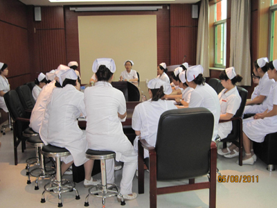 随着干部病区装修的竣工,干部病房各病区已经于7月底顺利搬迁,患者住院环境得到了极大地改善。进入8月各病区又迎来了2011年的数名新护士。为保证在硬件环境的改善之后,护理服务切实上位,8月5日下午周晓荣总护士长邀请我院在优质护理服务中成绩突出的消化内科杨会、宋亚华、赵红莉护士长及责任组长安苗、汪永华等一行5人,对干部病房各病区护士长、护理责任组长及干四病区全体护理人员举办了优质护理服务经验交流会。