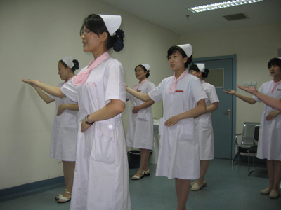 为了进一步推进优质护理服务和“三好一满意”活动,2011年6月2日下午,门诊导医以护理礼仪竞赛的形式做了一场精彩的汇报演出。全体导医参加了活动,护理部杨惠云主任、急诊王利总护士长和门诊部副主任王丽娟出席了活动。