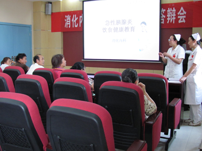 本次讲课汪永华护士向大家详细讲解了急性胰腺炎的概念、相关病因、饮食的基本原则、饮食注意事项等相关知识,在饮食选择及禁忌等方面做了深入而具体的讲解,尤其根据日常生活还为患者制订了详细而具特色的适合急性胰腺炎病人的食谱,主讲者通俗易懂、诙谐的语言受到了大家的好评;互动环节中,患者及家属纷纷提出问题,赵护士长及汪永华老师都耐心一一解答。患者家属反映,以前只听医生护士说过急性胰腺炎不能吃不能喝,不明白为什么,患者要忍受疼痛还要忍受饥饿,觉得有点不近人情,听了讲课后,明白了禁饮食的重要性,明白了怎样更好的配合医生护士的工作;还有病人说曾经以为鸡蛋营养价值高,能吃东西了就应该多吃点,但听了讲课后她知道了对于急性胰腺炎鸡蛋黄会使病情加剧……本次讲课在和谐、愉快的氛围中结束,这次讲课获得了患者及家属的高度评价,极大地满足了患者对疾病知识的需求,