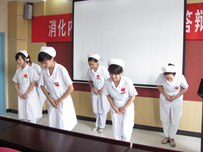 消化内科于2011年6月份开始分批进行护理礼仪培训,第一批培训活动在