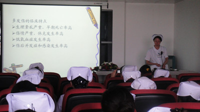 当今社会,处于一个迅速发展的时代,车祸,煤矿坍塌等各种因素造成的外伤越来越多,大出血,休克,感染,各器官受损等威胁着人们的生命,我们迫切的需要全面正确的急救和护理知识,王利护士长等主讲了如何准确评估伤者的病情,第一时间解除危及生命的损伤,急救原则,中外急救知识的差距等内容。护士刘媛媛、周秀详细讲解了多发性创伤患者的护理重点,感染的预防,并在查房的最后与与会者积极探讨了如何更好的解决此类患者的心理护理和早期康复护理等问题。