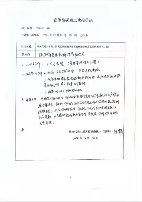 1 | 陕西海若医疗科技有限公司 | 细胞学计算机辅助诊断系统 | 深圳市生强科技有限公司 | SQS-1000(600P) | 1套 | 1150000.00 |