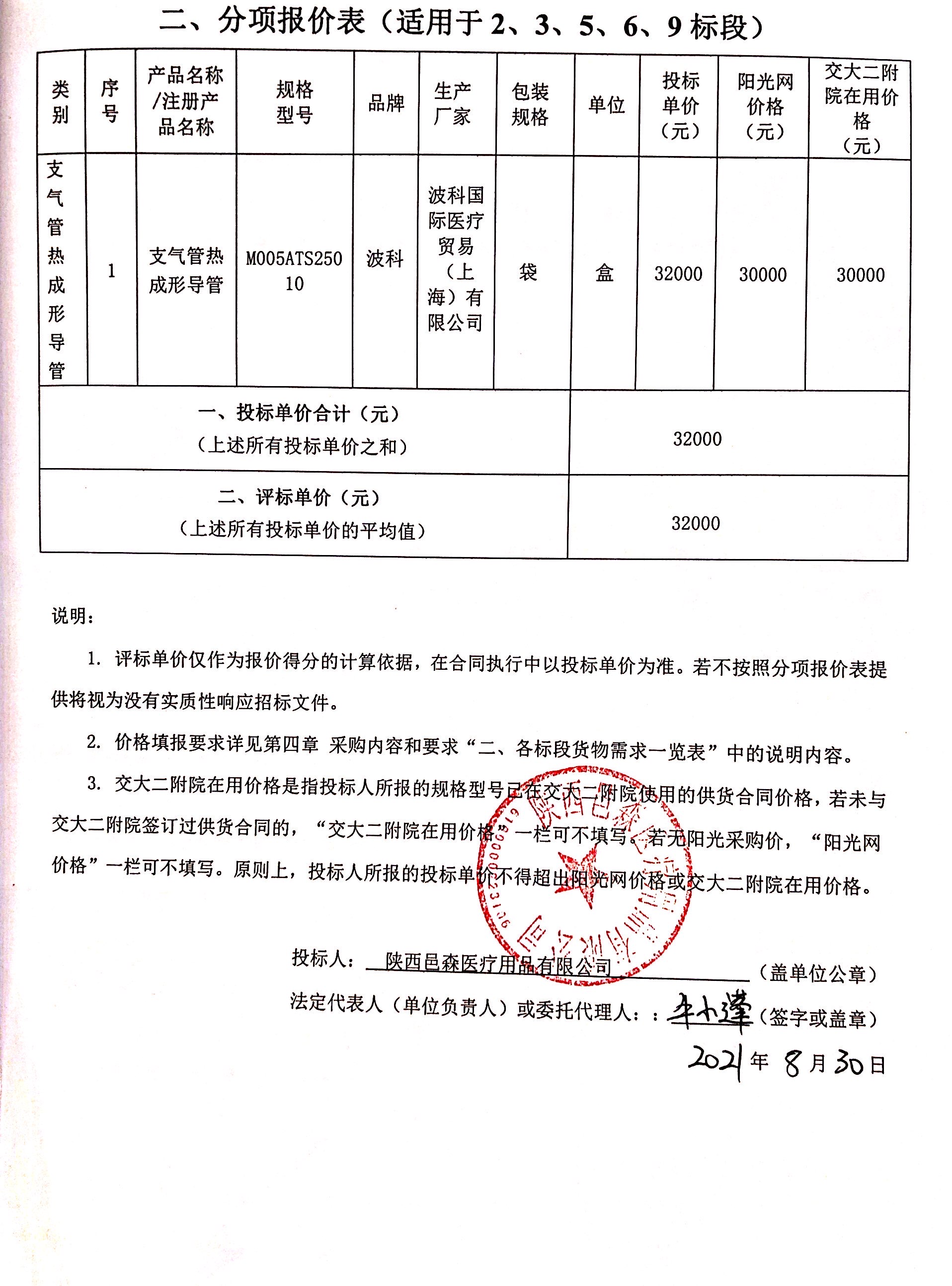 1 | (3标段)陕西邑森医疗用品有限公司 | 支气管热成形导管 | 波科 | 详见澄清函 | 详见澄清函 | 详见澄清函 | |