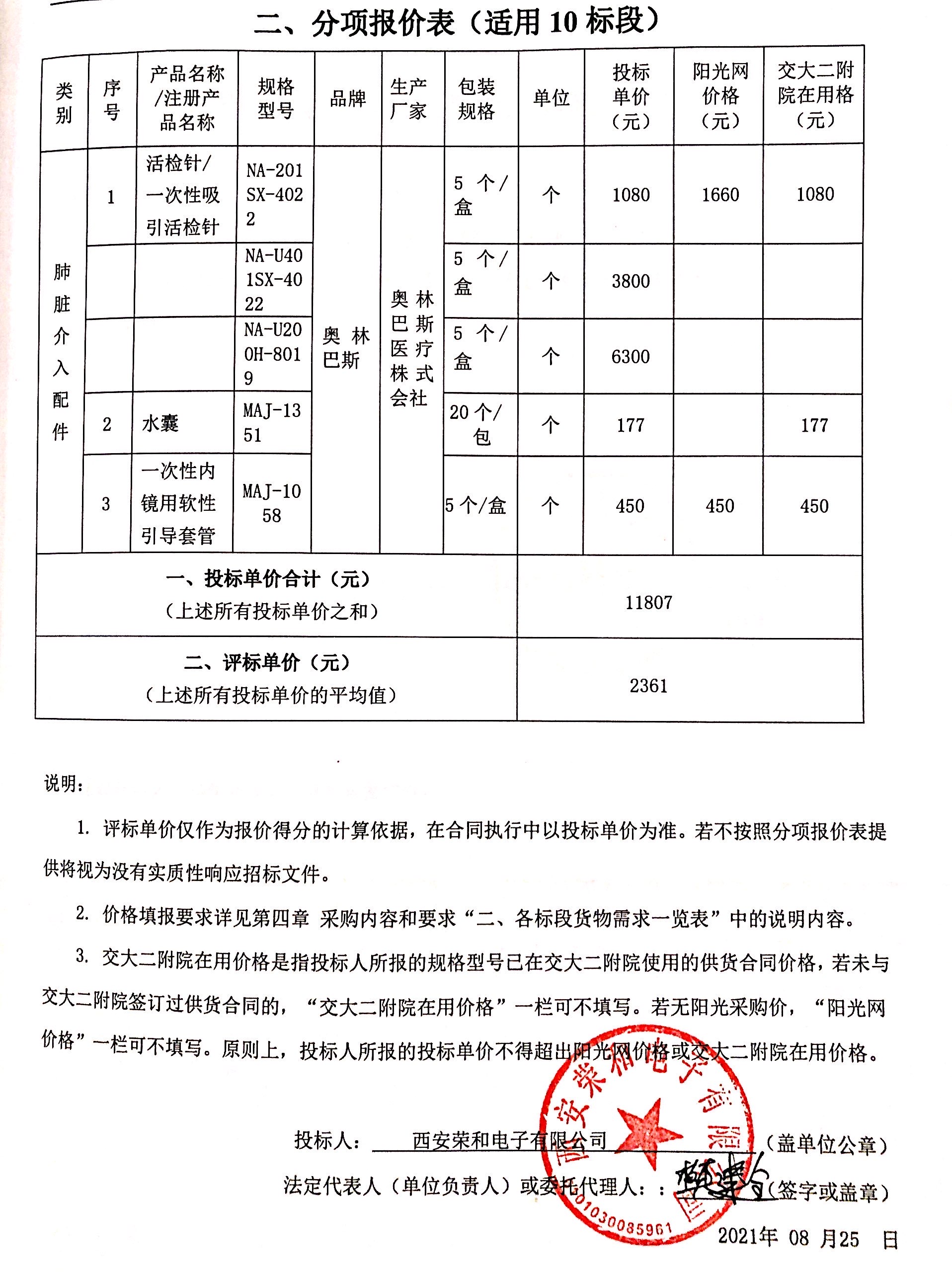 4 | (7标段)西安荣和电子有限公司 | 详见分项报价表 | 创想医学 奥林巴斯 | 详见分项报价表 | 详见分项报价表 | 详见分项报价表 | |