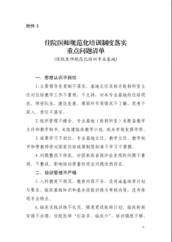 按照陕西省卫健委、陕西省住培管理中心统一部署,现开展全省范围内的住培自评工作,巩固落实住院医师规范化培训(以下简称“住培”) 制度,扎实推进住培基地质量建设,为配合这一工作的顺利开展,我院现开展专业基地、轮转科室自评工作,请各专业基地、轮转科室结合陕西省卫健委、住培管理中心通知要求及住培制度落实重点问题清单(具体内容见附件),比对实际工作情况,查漏补缺,举一反三,推进住培教学质量提升。