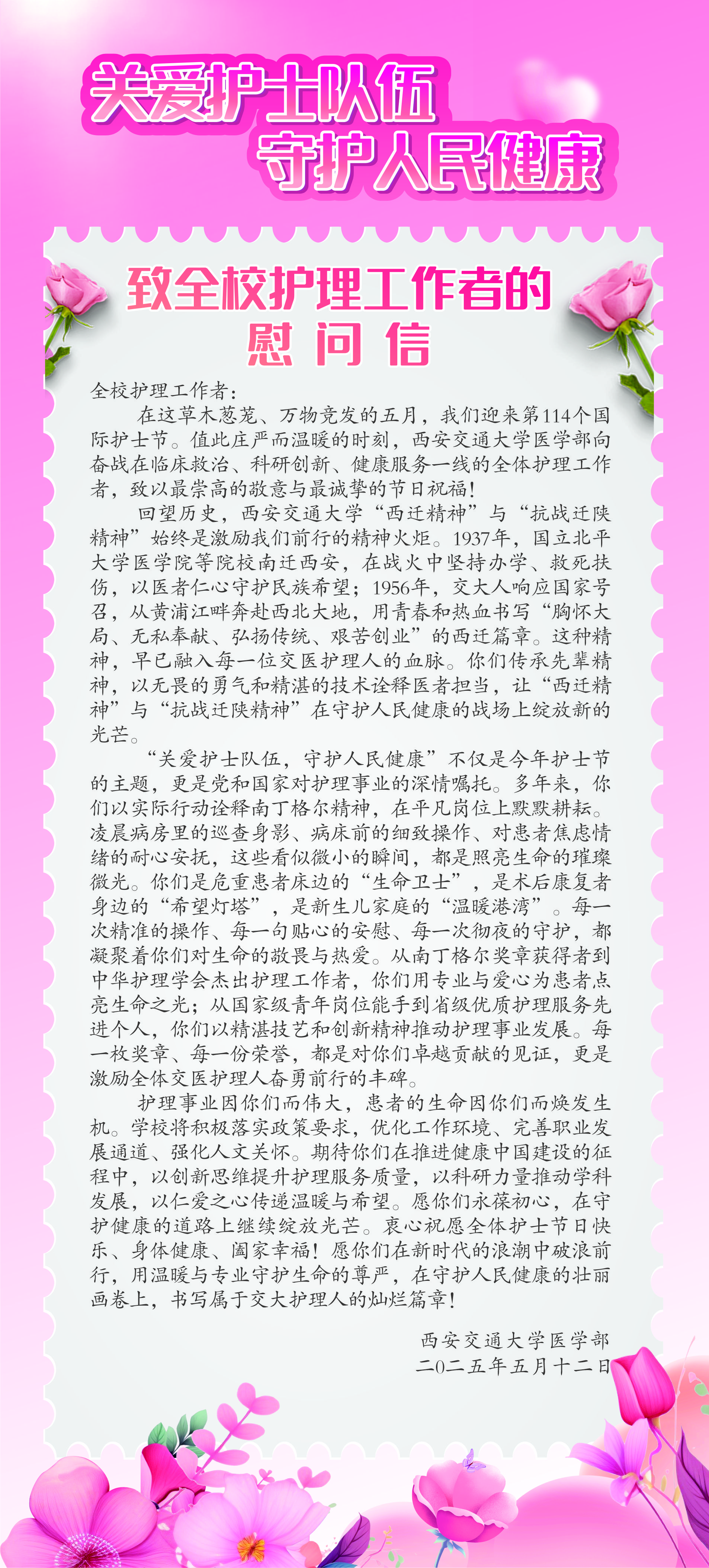上一条:西安交通大学第二附属医院2025年“5.12”国际护士节慰问信