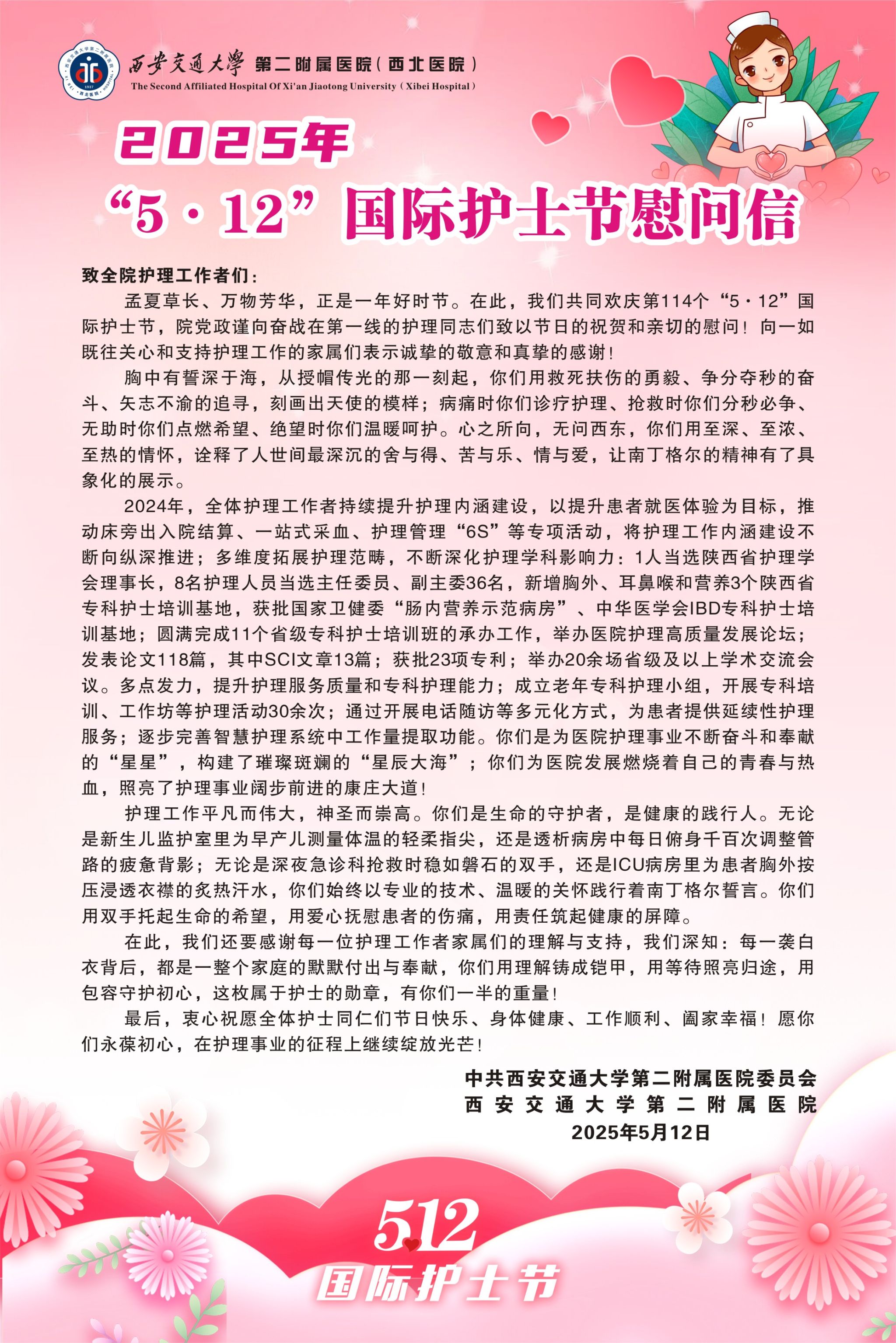 最后,衷心祝愿全体护士同仁们节日快乐、身体健康、工作顺利、阖家幸福!愿你们永葆初心,在护理事业的征程上继续绽放光芒!