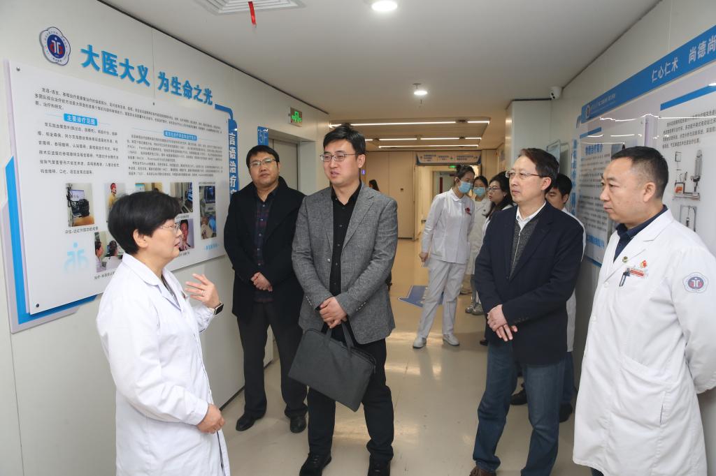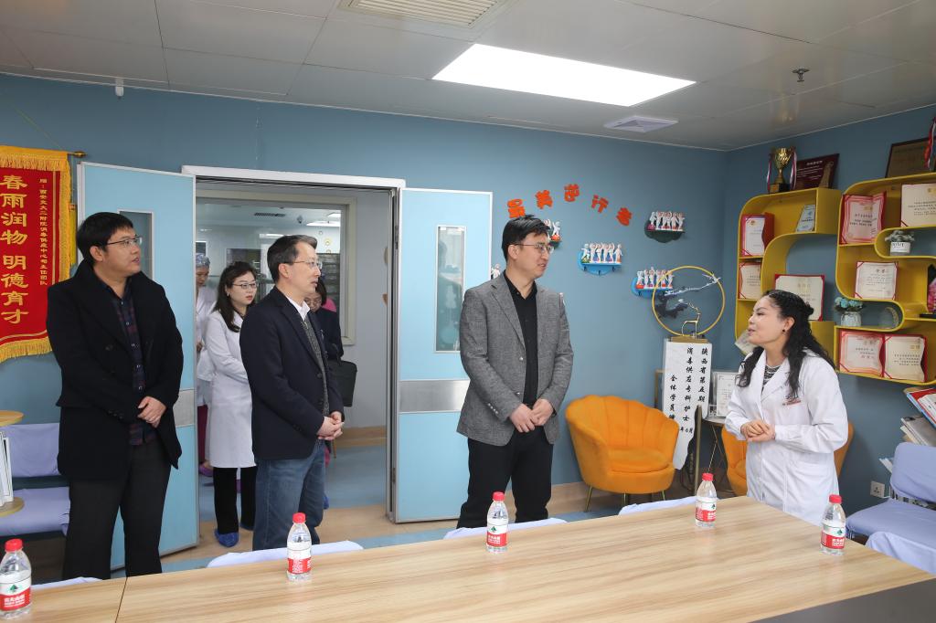 调研组一行现场观摩了我院“全国青年文明号”消毒供应科和“全国青年文明号”创建集体康复医学科日常工作。消毒供应科党支部书记、主任司慧君和康复医学科主任张巧俊,党支部书记、副主任袁海峰,护士长杨峰以及科室团干部、团青代表陪同调研并详细介绍和充分展示了科室专业特色、团青工作尤其是青年文明号的创建工作。
