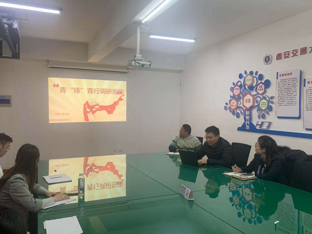 11月17日下午,由院团委主办、第八团总支承办的青“锋”青行下科室调研会第七站在后勤三楼会议室举办。院团委书记董艳、团委挂职副书记鲍和、第八团总支各团支部书记及青年代表参加会议,会议由第八团总支书记杜佳朋主持。