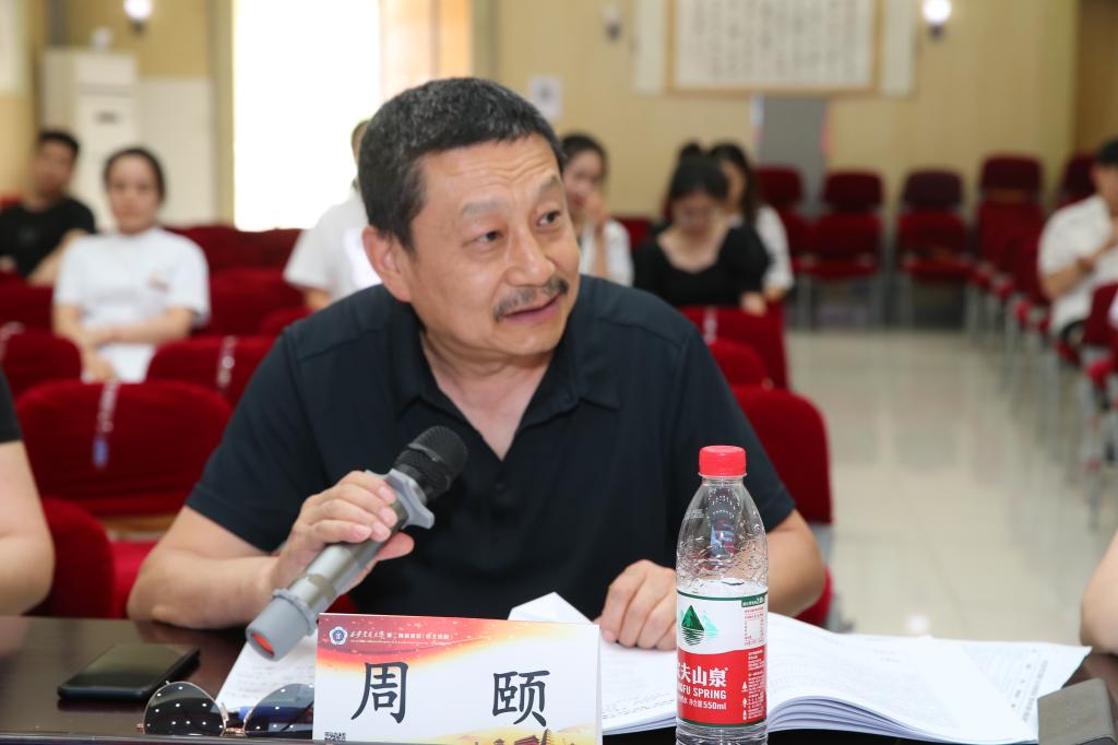 首先,董书记宣读了评分标准。自2023年6月13日本季大赛启动以来,院团委共收到来自33个团支部的39部脚本,所有脚本提交者以4分钟PPT的形式从故事梗概、拍摄手法、视频拟预期达到的目标、可能存在的困惑等四个方面逐一进行答辩。专家评委们对39部脚本进行了评审,从不同角度为脚本提出了切实可行的修改意见和建议。专家组将综合评选出3个优秀脚本给予6000元启动资金资助(叙事医学、科普宣教、挺膺先锋各1个),其他评审通过的脚本给予5000元启动资金资助。