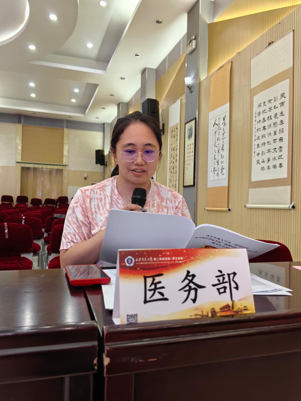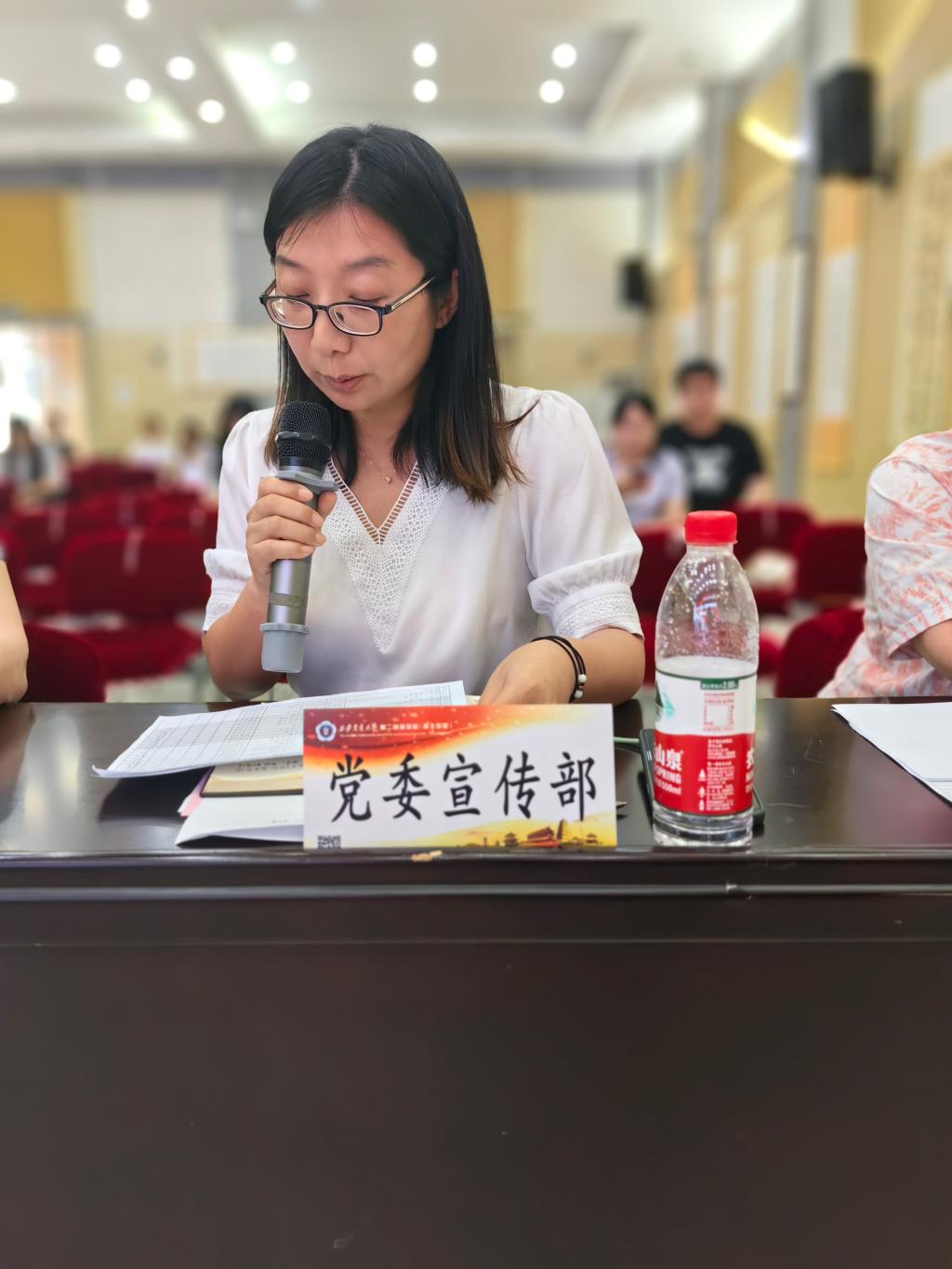 7月7日下午,院团委在南院多功能厅召开“奋斗的青春最美丽”微视SHOW大赛第十季脚本答辩评审会。西安美术学院影视动画系副教授鲁涛,校广电中心编审周颐,校团委副书记毕晓楠,医院相关职能科室负责人作为评审会评委嘉宾以及近40名脚本答辩人参加会议。会议由院团委书记董艳主持。