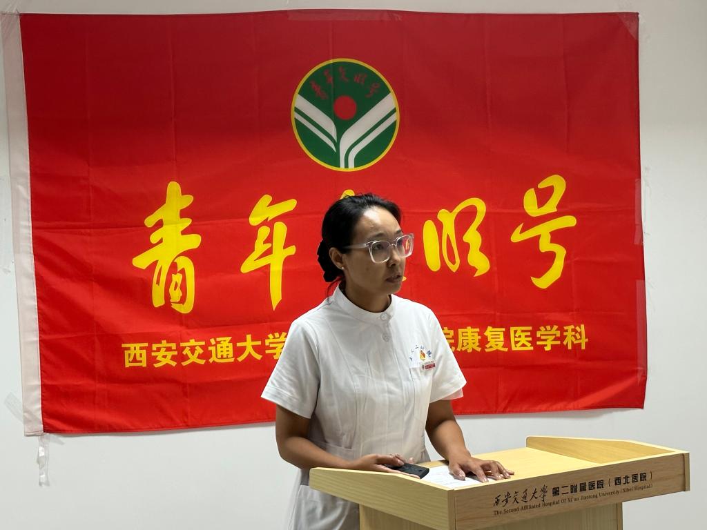 接下来,董艳根据全国卫生健康系统国家级青年文明号测评指标对康复医学科的团青和创号工作进行了指导,回顾了以往的申报历程,总结了申报经验。她提出康复医学科要以创号为契机,充分发挥学科主委单位的作用,进一步增强学科在西北乃至全国的影响力。