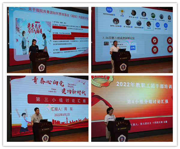 会议首先由本次培训班各分组讨论的代表进行展示汇报。呼吸与危重症医学科团支部书记田甜,骨关节外科团支部书记张蕾,第六团总支书记周挺,干四团支部书记金鑫分别结合本职工作,围绕如何发挥共青团组织优势促进医院高质量发展;如何深入学习贯彻习近平总书记在庆祝中国共产主义青年团成立100周年大会上重要讲话精神等讨论主题进行汇报。