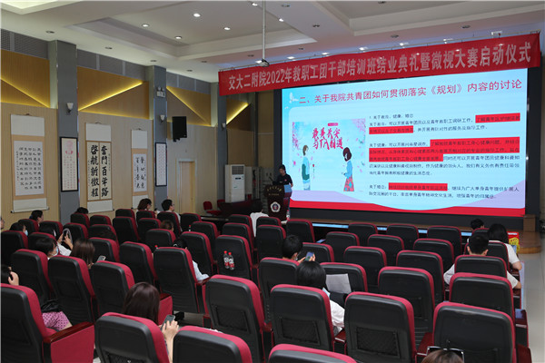8月1日下午,院团委在南院多功能厅举办2022年教职工团干部培训班结业典礼暨“奋斗的青春最美丽”微视SHOW大赛第九季启动仪式,60余名团干部参加会议,团委书记董艳主持会议。