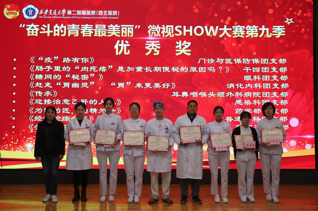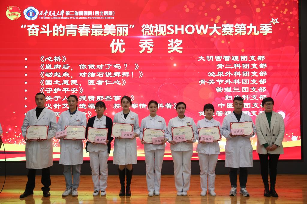 “奋斗的青春最美丽”微视SHOW大赛自2014年开展以来,已逐步成为我院共青团和医院文化的品牌活动。9季大赛共征集到223部视频,其中科普作品75部,叙事医学148部,九季作品累计获得25.3万余票,在腾讯视频总点击量超119万余次,其中点击量超1万次的作品20余部。已有14部作品荣获18个国家级奖项,5部作品荣获省级奖项。当前,正值全党全国深入学习贯彻党的二十大精神之际,大赛以“奋斗的青春最美丽”为主题,凝聚广大青年和医务人员的智慧和力量,充分展现出二院医务人员“大医大义”职业风姿,有力的鼓舞二院青年一代立足本职,誓让青春在全面建设社会主义现代化国家的火热实践中绽放绚丽之花!