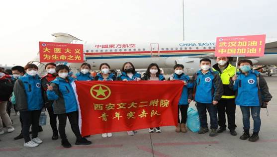 2020年疫情以来,坚持多线作战,同心抗疫不辱使命。一方面,第一时间组建青年突击队连续工作27天,形成一整套衔接有序、运转高效的志愿者服务体系:除夕完成发热单元搬迁、支援夜间预检分诊等工作;做好援鄂医疗队员的物资准备、打包送机和后勤保障工作。一方面,连续69天坚守岗位,全力做好服务保障的对接工作:实现24小时在线,确保捐款和受捐的93634件物品的全程手续办理;连续4周为384名一线医务人员家属发放受赠蔬果;连续21天对接联系408台次车辆接送我院医护人员上下班623人次;为我院子女联系线上辅导213人次,联系援鄂队员子女参加夏令营。一方面,讲好抗疫故事,坚定“四个自信”:策划并拍摄原创MV《爱你无悔》,作为全国唯一被单独展示的作品荣登央视2020年五四青年节特别节目,展现青年抗疫风采;组织参加“战‘疫’英雄讲团课”线上宣讲、为新生做报告、与企事业单位分享抗疫故事,弘扬伟大抗疫精神。2021年底疫情期间,依托青年文明号成立青年突击队,对外派出采样人员1558人次采样近41万份,对内为家属和学生采样3万余份;组织“‘疫’不容辞,青年担当”预检分诊志愿服务,181人次坚守36天。2022年初,组织284名志愿者开展“雷锋精神耀阳春”志愿服务110天,为西安抗疫胜利做出重要贡献。