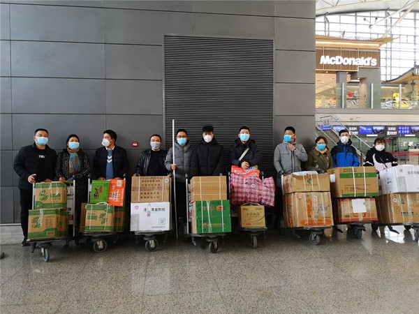 随后,先锋队志愿者紧急参与到临时搭建预检分诊处,布置感染科专门单元、为援鄂队员采购装备及生活用品,登记队员家属联系方式,陪同医疗队员到机场打包行李和物资,慰问一线队员家属等各项相关工作中。截至3月1日,青年志愿者们共为287名一线医护人员准备了867份日用物资,搬运行李200余箱,为387名一线医务人员的家属提供了相应志愿服务,人均累计工作150余个小时。