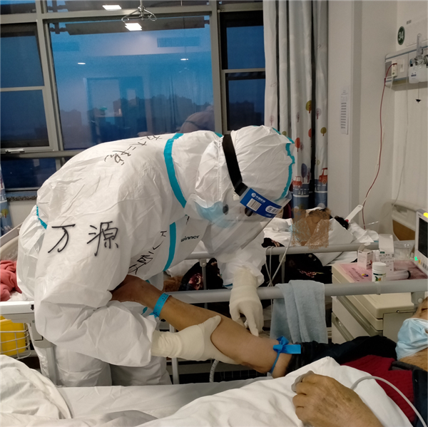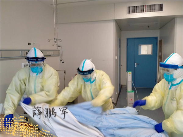 来自重症医学科的张彪,对抢救用的监护仪、呼吸机、高流量氧疗机、输液泵、注射泵、除颤仪、负压吸引器等无一不能熟练操作,扎实的护理经验使他面对患者时能快速找出护理问题,制定出个体化护理措施。前些日子,一位患者被新冠肺炎夺去生命,尸体料理是一项高风险的工作,男护士薛鹏军没有犹豫,他有条不紊的拔除患者身上各种治疗管路,为患者擦洗身体、填塞消毒棉球、消毒床单。他说,此时想到的就是让患者有尊严的离开!他们付出也感动着患者,2月26日凌晨,一位老人血氧饱和度突然降至32%,意识丧失,巡视病房的万源发现后迅速为老人上了呼吸机,老人意识恢复后开口说的第一句话便是“谢谢”。万源说:“我知道停止呼吸时的那种憋气感会异常难受,这么大的痛苦后还能下意识的说一句‘谢谢’真的让我难以置信。”这支“暖男”队伍中还有郭学军、刘尊、许龙、程龙、朱一斌、史晨毅以及在武汉第九医院的医疗队员何其豪,他们精力充沛、临危不惧的性别优势,给患者带来不一样的活力与信心。