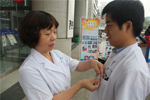 启动仪式上,院团委书记董艳首先介绍了本次主题活动的情况。她指出,本次“团徽耀青春·奋斗最美丽”主题活动,内容和形式丰富,共包括四个子活动:“十佳魅力团支部”风采展、“团徽耀青春”团员亮身份活动、“我和团徽合个影”摄影大赛、“团徽耀青春”门诊导医志愿服务,旨在进一步落实“两学一做”学习教育活动,增强团员青年的责任感和主人翁意识,弘扬爱岗敬业,求真务实,开拓创新的奉献意识。