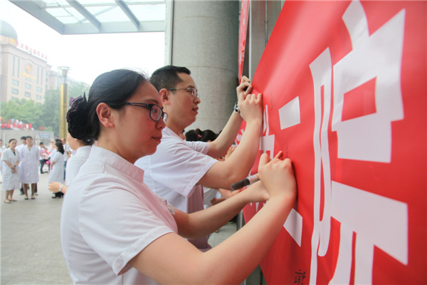 仪式现场同时进行了“十佳魅力团支部”风采展,并由参加活动的嘉宾为团干部代表佩戴团徽,所有参加活动的团干部在“团徽耀青春·奋斗最美丽,我为二院添光彩”的横幅上签名。全院各团支部将陆续组织开展团员青年佩戴团徽,亮明身份的活动。本次“团徽耀青春”团员亮身份活动既是对广大团员青年的勉励和鞭策,更是对建党95周年的献礼。这幅“团徽耀青春·奋斗最美丽,我为二院添光彩”的横幅随后将在各团总支、各支部流转签名,记录下全院团员青年爱院爱岗、敬业奉献的决心和信心。