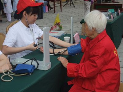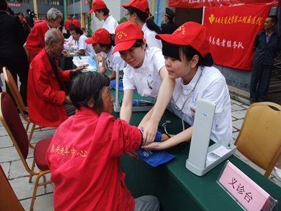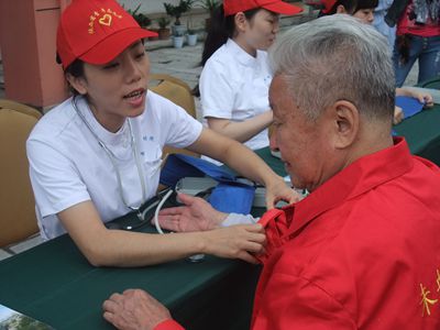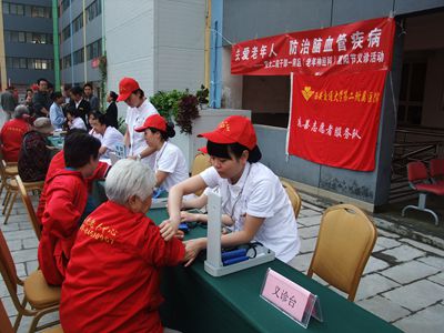 启动仪式于9点正式开始,本次活动以“尊重关爱老人”为主题。我院青年志愿者统一身着工作服,头戴红色志愿者帽子,为老年公寓的老人们进行测量血压、宣讲健康知识,同时向老人们发放我院院报和宣传册。此次活动持续了3个多小时,共服务老人达到50多名,发放宣传册和院报200余份。
