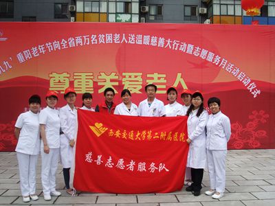 2014年9月24日上午,由院团委组织的志愿者服务队奔赴位于三桥的未央社区老年公寓,参加由陕西省慈善协会组织的2014年“九·九”重阳节送暖敬老活动启动,同时为老年公寓的老人们进行义诊和健康宣讲。