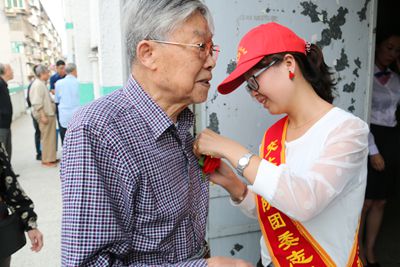为弘扬尊老敬老的传统美德,发扬爱老助老的文明风尚,9月26日下午,在我院南院大礼堂举办离退休职工2014 年重阳节主题活动暨文娱汇演之际,在院团委的组织下,机关团支部联合急诊科团支部共同发起“敬老助老献重阳,爱托夕阳更辉煌”志愿服务活动。参与本次活动的志愿者承担了本次大会的礼仪工作,并为医院离退休的老师们提供了帮扶服务,让老师们过了一个快乐的节日,以实际行动送上我们年青一代对老一辈的美好祝福,传承我院尊老、敬老、爱老、助老的传统美德。