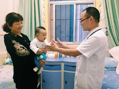 从监护室返回病房就到了下午上班时间。我们以为叶高波午饭没完,午休也泡了汤,这下总可以让别的医生帮忙照看下病房,自己稍微休息一下。可是叶高波却又转身投入到下午的常规查房。由于他独特的幽默方式,当他再次出现在病房,许多患儿已经没有了上午查房时的拘谨和敌意,病情轻的患儿甚至主动要求“叔叔抱抱”。只见他轻车熟路地抱着患儿,丝毫不顾及鼻涕和口水不时蹭到他的肩头。这时我们才想到,这个30岁的未婚汉子已经不知道抱了多少次别人的孩子。
