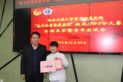 观看结束后,巩守平副书记对此次大赛进行了点评。他首先与大家分享了自己对以微视频、新媒体的感受。他指出当今社会已经进入了新媒体时代,微视频具有互动性、娱乐性、草根亲近性、快餐型文化、门槛低、非权威性等特点,每个人都成为了信息的接受者和发布者。当代青年要利用好这个平台弘扬社会主义核心价值观传播正能量,我院的青年团员更要充分利用新媒体这个平台向社会展现出二院年轻人尽职尽责、尽心尽力的敬业精神。巩书记认为本次大赛打破了固有理念,创新了活动形式,收到了良好的效果,但更是一个热身赛,今后还会继续开展此类系列活动,更好地利用新媒体做优秀医务人员的宣传推介工作。