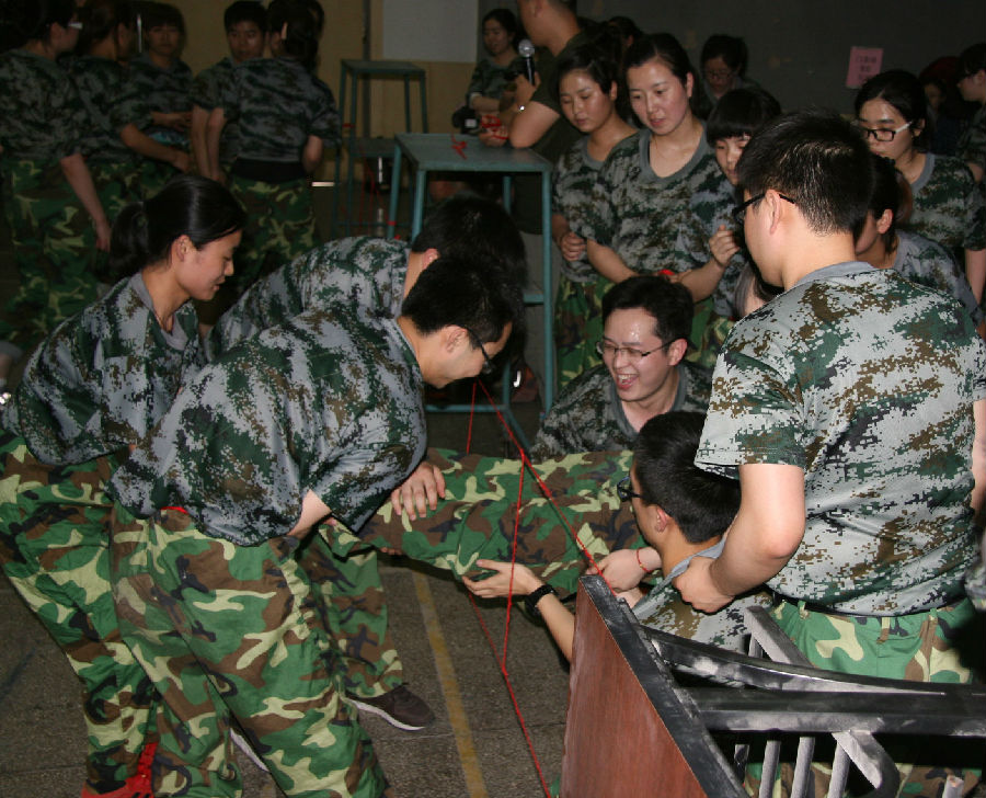 本次拓展培训的闭营环节是“支援前线”。该环节主要考验的是团队成员的奉献精神、牺牲精神和执行力。当教练喊到“前线需要某某物品”时,队员们必须迅速并准确无误的将该物品交到队长手中。