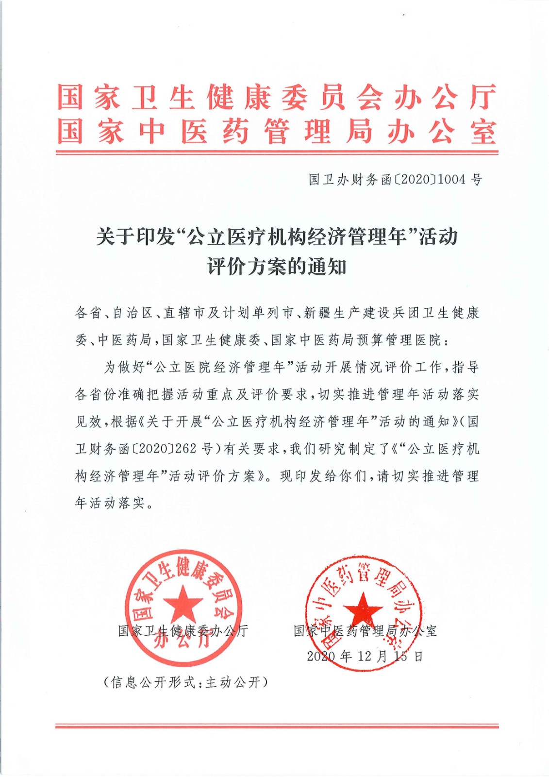 关于印发“公立医疗机构经济管理年”活动评价方案的通知