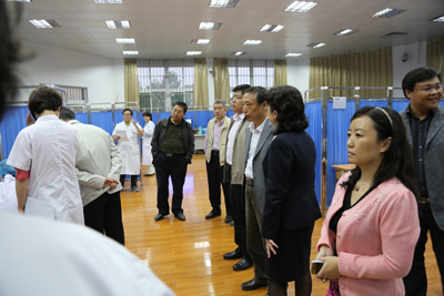 检查组首先观看了本次考核过程,考核采用赛道式,项目涉及7个学科5个大站,共30分钟;虽然是模拟考核,选手们也以实战的态度应对,他们准备充分,有条不紊的按照考题要求完成所考科目。之后,各站点考官进行现场点评,肯定学生考核操作规范的同时,重点指出存在的不足。颜助理代表学校对培训教师及学生付出的努力给予肯定和感谢,对考核过程进行了点评,对赛前的组织、筹备工作做了重要指示。随后一行领导视察了我院内、外科技能训练平台及新装修完成的研修生公寓,对医院在改善教学条件方面做出的努力给予高度肯定。