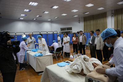 5月8日,教务部组织了大学生临床技能竞赛赛前模拟考核,全面考查学生对各项内容的掌握情况。学校及医院领导对此项工作高度重视,校长助理、医学部副主任颜虹教授,学校教务处徐忠锋副处长、张俊斌副处长及其他教学管理人员一行7人来我院检查大学生临床技能竞赛培训工作,我院刘原副院长、巩守平副书记等一同参加了检查过程 。