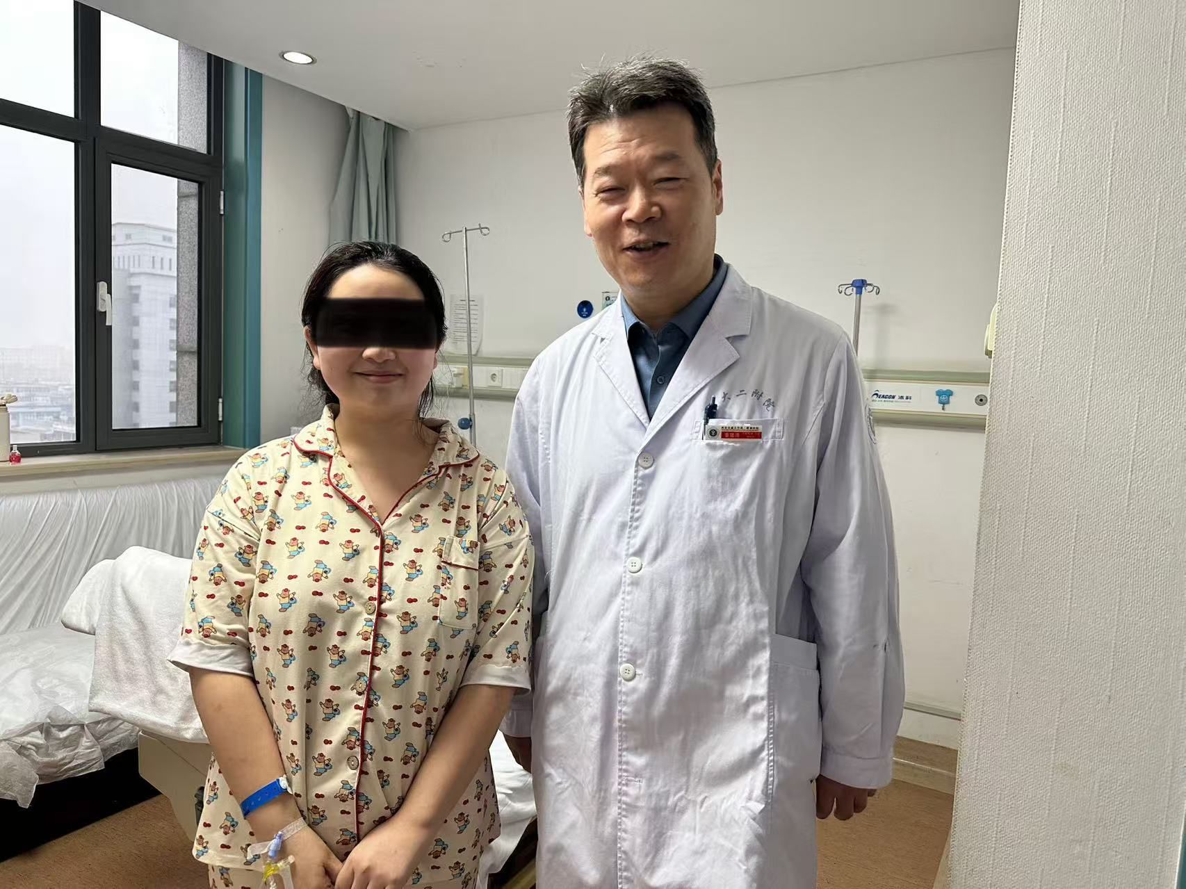 在2024年10月21 日,姜建涛主任医师、李建忠副主任、赵丹文医师为小张实施了手术治疗,术中先尝试胸腔镜手术,腔镜下可见食管下段至贲门巨大隆起性病变,姜主任评估后认为腔镜下操作困难大,遂将操作孔延长至5cm行手术,术中发现肿瘤环食管周生长,完整剥除及其困难,但考虑小张年轻,未避免切除食管而对小张以后的生活造成影响,姜主任团队仔细操作,尽可能为小张保住食管,在姜主任及其团队的精心操作下,手术顺利,手术仅历时一个多小时,便将肿瘤完整剥除,剥除下来的肿瘤长径达到了快13cm,试水检查食管粘膜未损伤。在术后第一天查房的时候小张已经能下地活动了,激动的拉着姜主任的手,感谢姜主任为她成功实施手术并保住了食管,感叹姜主任的高超技艺,现小张一切恢复顺利,已康复出院。