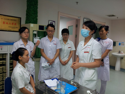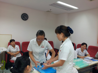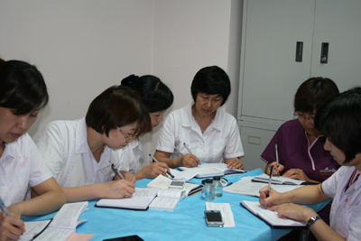 全体护士更是在护士长的组织下,成立了13人组成的 “创优”工作小组,按照培训--考核--培训的方式,将近期的创优工作整合汇总、统一规划,分批计划、分期完成。在加强日常工作的基础上,根据计划科室每周六首先分三大组分别在各组长的带领下进行理论学习及操作培训。对于理论次周内个人自学巩固,周六统一集中,针对所学内容进行笔试考核,而操作则在每天的交班会后各组教练分次逐个进行考核。在新一轮的培训开始前,先对上一次的理论考核成绩进行点评,查漏补缺,不及格者加强巩固,及时补考, 如此循环。通过近几周的培训学习,护士们觉得自己的理论知识及操作技能都得到了较大的提高,对我院创优目标、内涵、各项应急预案及科室的各项制度、常规、常见操作有了更深更为全面的掌握,妇产科人也将会以最佳的状态迎接“百优”的评审。